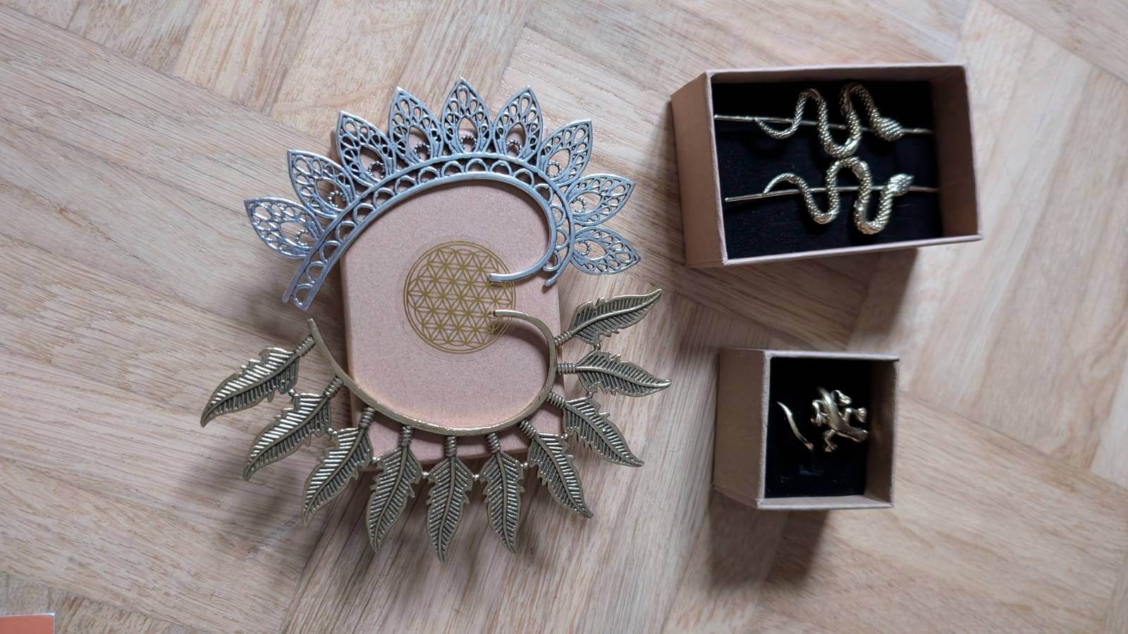 Gerade in der Welt von Hippie Schmuck und Boho-Looks sind es oft die kleinen, ungewöhnlichen Formen, die ein Outfit kippen lassen. Von nett zu ich hab’s so gemeint und häufig steckt auch eine persönliche Message dahinter. Und genau da setzen die vier Stücke an, die hier im Fokus stehen. Wir haben uns die Elfen-Ohrmanschetten Blossom und Federn angesehen, der magische Manschetten-Ohrring Snake kommt in Gold zur Geltung und den verspielten Gecko-Ring, ebenfalls in Gold, haben wir auch einer näheren Betrachtung unterzogen.